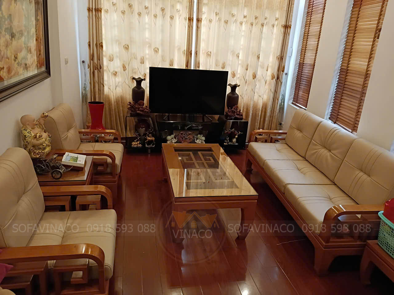 Chất liệu da (thật hoặc công nghiệp): Giúp bộ sofa gỗ trông đẳng cấp hơn, dễ dàng lau chùi khi dính bẩn. Da công nghiệp (Simili, PU) là lựa chọn tiết kiệm ngân sách hiệu quả.